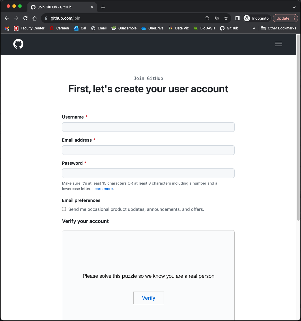 You will have to pick a username - remember that other people will see this username so use one youâd feel comfortable with. Here is some advice for picking a username. I use my OSU email address with GitHub but you can use a personal one too.