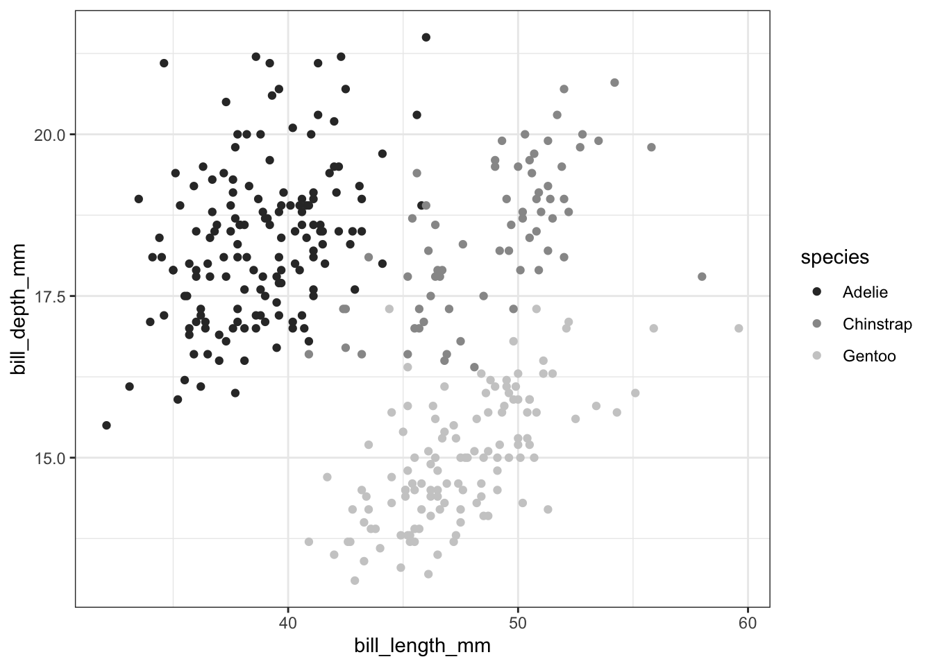p <- ggplot(data = penguins) + theme_bw() +