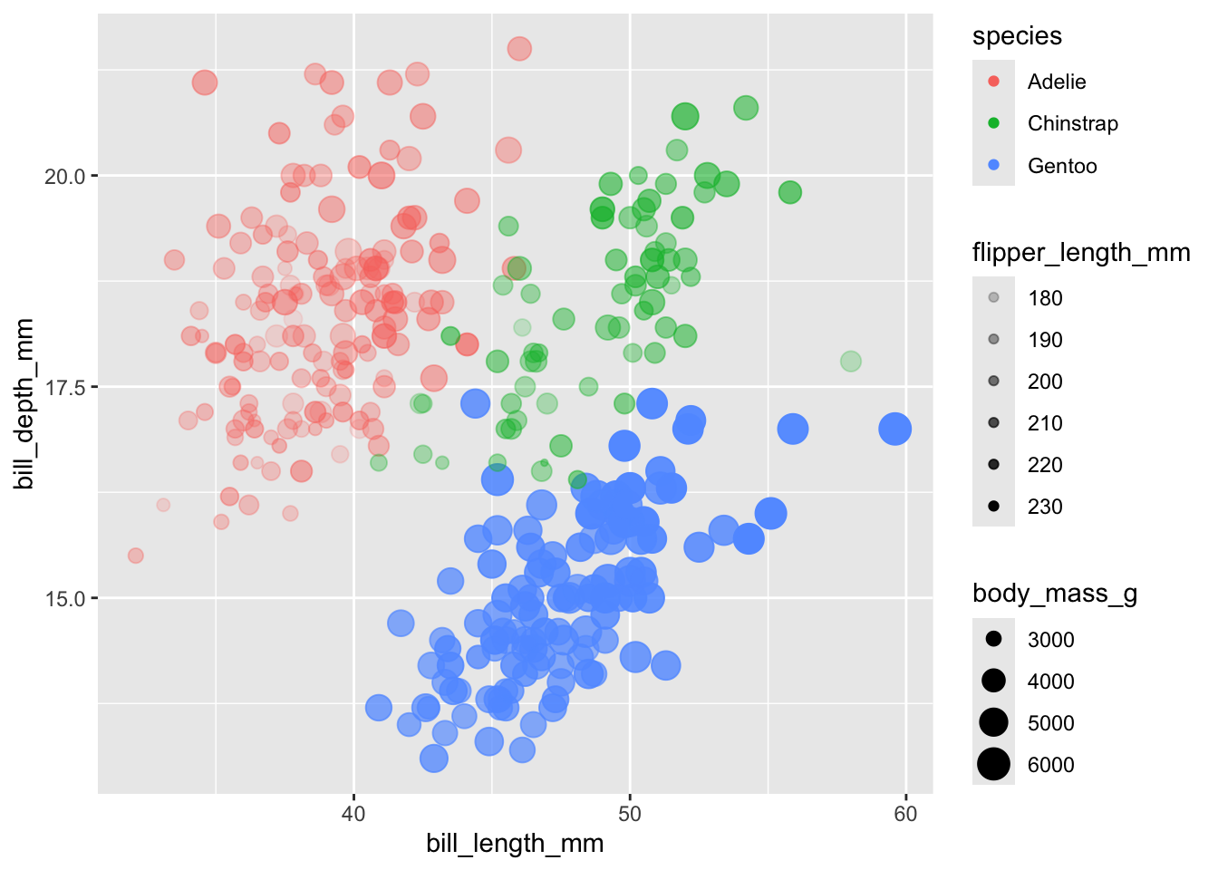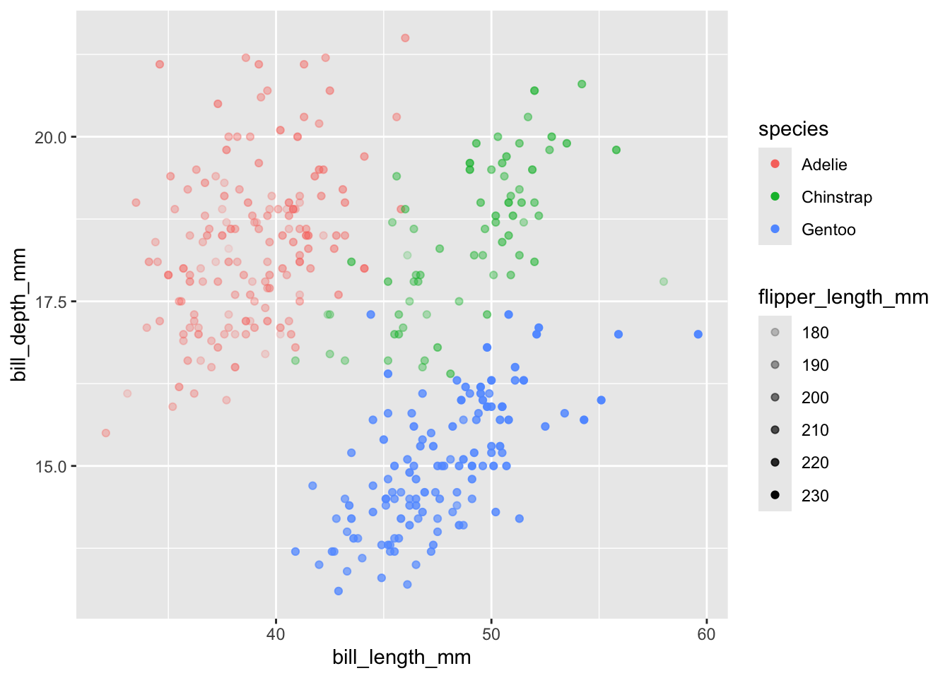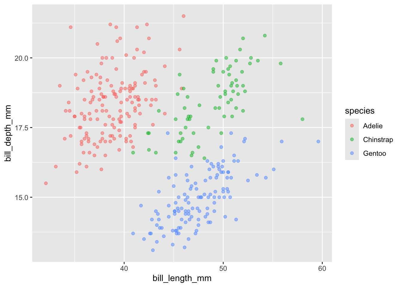 geom_point(alpha = 0.5, mapping = aes(x = bill_length_mm,