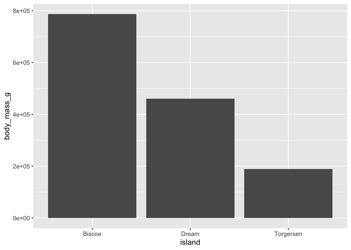 Note that the variable we are plotting to y is mean_body_mass - a new variable we calculated using summarize().